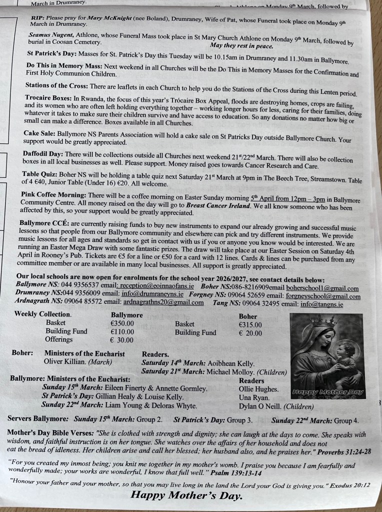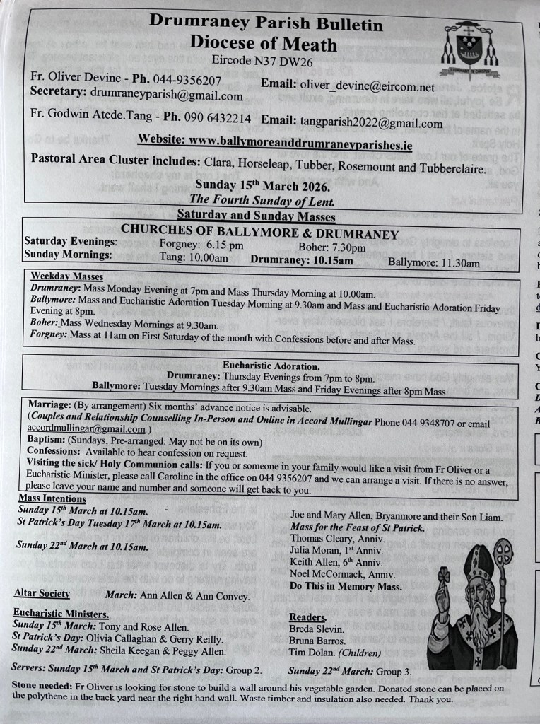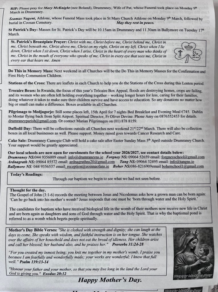 Weekly Parish Bulletins Sunday 15th March 2026. Share this: Share on X (Opens in new window) X Share on Facebook (Opens in new window) Facebook Like Loading...